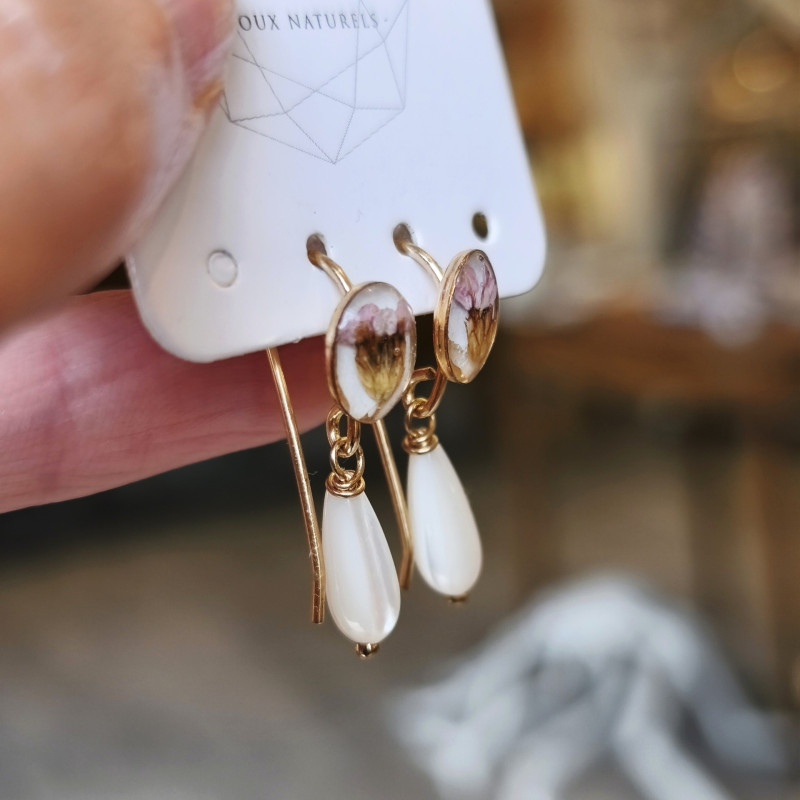 Boucles d'oreilles Pâquerette Fleurs des Hautes-Alpes Nacre