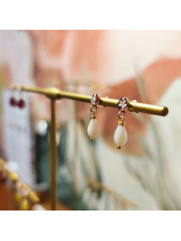 Boucles d'oreilles Pivoine Torilis blanc Nacre
