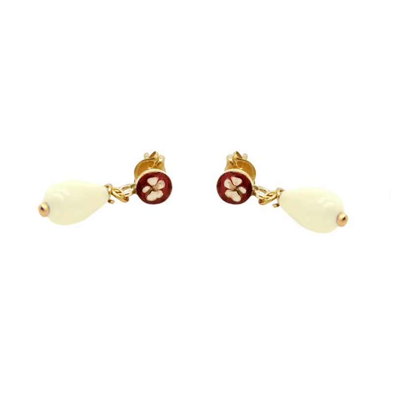 Boucles d'oreilles de la gamme florale réalisées à partir d’éléments en or gold filled 14k, de nacres naturelles et ornées de pétales de rose et de torilis des champs cueillis à la main en Provence par Angélique, la créatrice. Les compositions présentent dans ses bijoux sont naturelles et varient au fil des saisons, à l'allure des floraisons et selon ses cueillettes. Elles sont pétiolées, sessiles, entières, parfois dentées à nervures pennées ou palmées avec un certain nombre de nœuds, et sont triées, puis sélectionnées et reposées pendant plusieurs jours avant de prendre forme dans son atelier-boutique à Aix-en-Provence (13290). Pièce anti-allergène. Hauteur : 16 mm. Largeur : 4 mm. Entretien : ne craint pas l'eau.