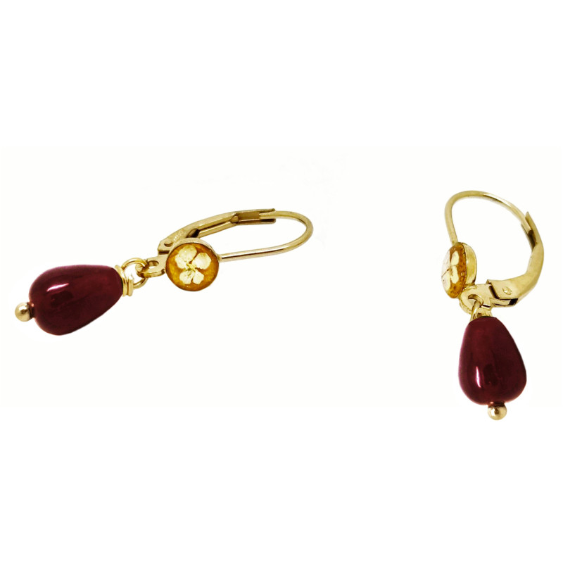 Boucles d'oreilles dormeuses de la gamme florale réalisées à partir d’éléments en or gold filled 14k, d'agates fuchsias et ornées de pétales de jasmin d'hiver et du torilis des champs cueillis en Provence par Angélique, la créatrice. Les fleurs présentent dans ses bijoux sont naturelles et varient au fil des saisons, à l'allure des floraisons et selon ses récoltes. Elles sont pétiolées, sessiles, entières, parfois dentées à nervures pennées ou palmées avec un certain nombre de nœuds, et sont triées, puis sélectionnées et reposées pendant plusieurs jours dans son atelier-boutique à Aix-en-Provence (13290) avant de prendre forme entre ses mains. Pièce anti -allergène. Hauteur : 28 mm. Largeur : 4 mm. Entretien : ne craint pas l'eau.