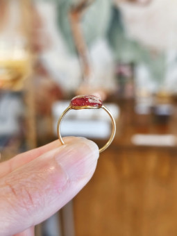 Bague de la gamme florale, réalisée à partir d'un support en or gold filled 14k et ornée de pétales de rose et de fleurs blanches cultivés et cueillis à la main en Provence par Angélique, la créatrice. Les compositions présentent dans ses bijoux sont naturelles et varient au fil des saisons, à l'allure des floraisons et selon ses cueillettes. Elles sont pétiolées, sessiles, entières, parfois dentées à nervures pennées ou palmées avec un certain nombre de nœuds, et sont triées, puis sélectionnées et reposées pendant plusieurs jours avant de prendre forme dans son atelier-boutique à Aix-en-Provence (13290).