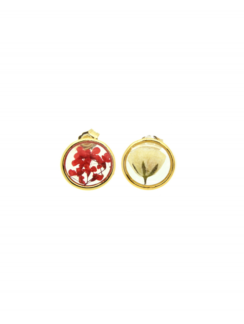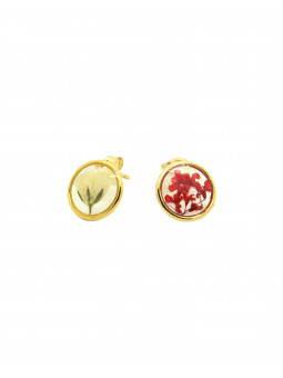 Boucles d'oreilles clous de la gamme florale, réalisées à partir d’éléments disponibles soit en or gold filled 14k, et ornées d'une fleur de gypsophile et de torilis des champs cueillis à la main en Provence par Angélique, la créatrice. Les compositions présentent dans ses bijoux sont naturelles et varient au fil des saisons, à l'allure des floraisons et selon ses cueillettes. Elles sont pétiolées, sessiles, entières, parfois dentées à nervures pennées ou palmées avec un certain nombre de nœuds, et sont triées, puis sélectionnées et reposées pendant plusieurs jours avant de prendre forme dans son atelier-boutique à Aix-en-Provence (13290). Cette paire de boucles d'oreilles a la particularité de ne révéler qu'un seul exemplaire. Pièce anti-allergène. Diamètre : 10 mm. Entretien : ne craint pas l'eau.