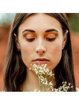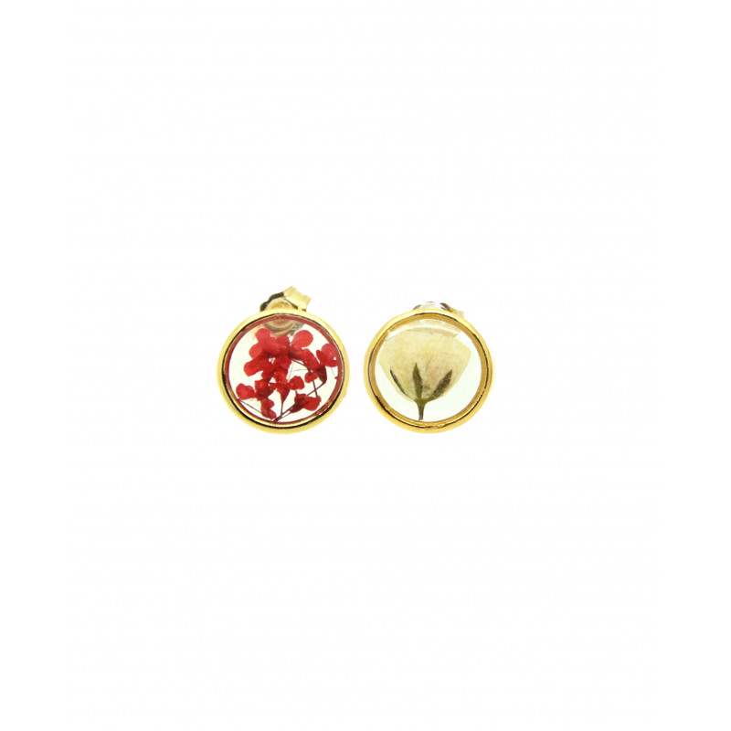 Boucles d'oreilles clous FLEUR DE GYPSOPHILE TORILIS ROUGE Or gold filled 14k