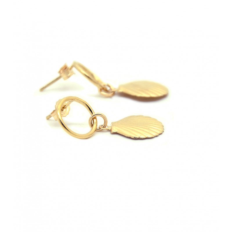 Pièce réalisée à partir d'éléments en or gold filled 14k. Hauteur : 23 mm. Pièce anti-allergène. Entretien : ne craint pas l'eau.
